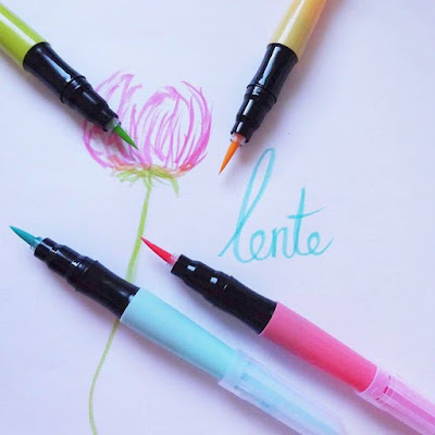 Ik kan er ook echt niet mee uit de voeten om mee te handletteren. Kleur aanbrengen gaat prima, idd mooie kleurtjes.